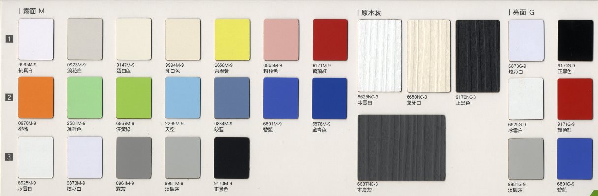 金 城 OA 美耐板(安勝系列) 色 卡 ( 若有色差,以實際色卡為準 ) 色卡表