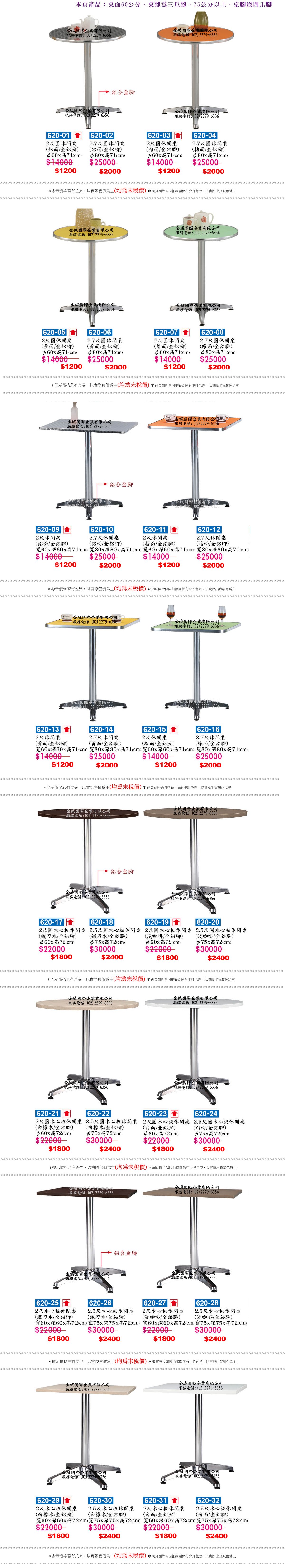 | 休閒桌椅 | 618 | 619 | 620 | 621 | 622 | 623 | 624 | 625 | 626 | 635 | 637 | 637 | 638 | 642 | 645 | 646 | 單桌 | 623 | 單椅 | 622 | 625 | |