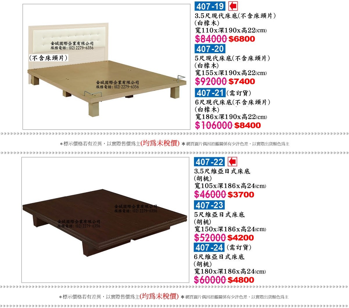 | 床頭箱(片) | 407-01 | 408 | 塑鋼床底 | -T05 |